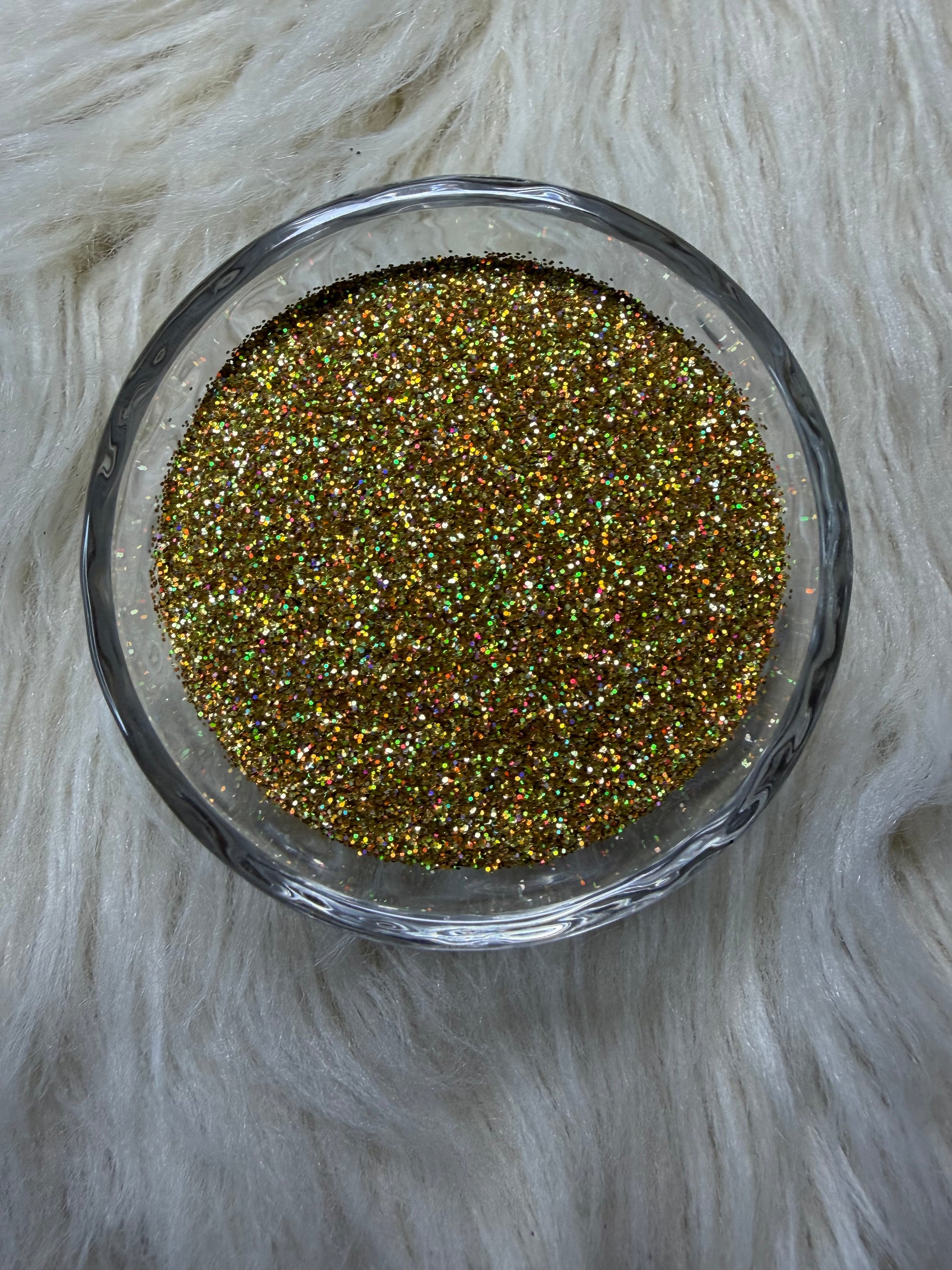 A bright holographic gold fine glitter with just the right touch of sparkle, perfect for adding a sweet, frosty finish. Ideal for tumblers, resin, nails, and crafts. Sold in two ounce increments.