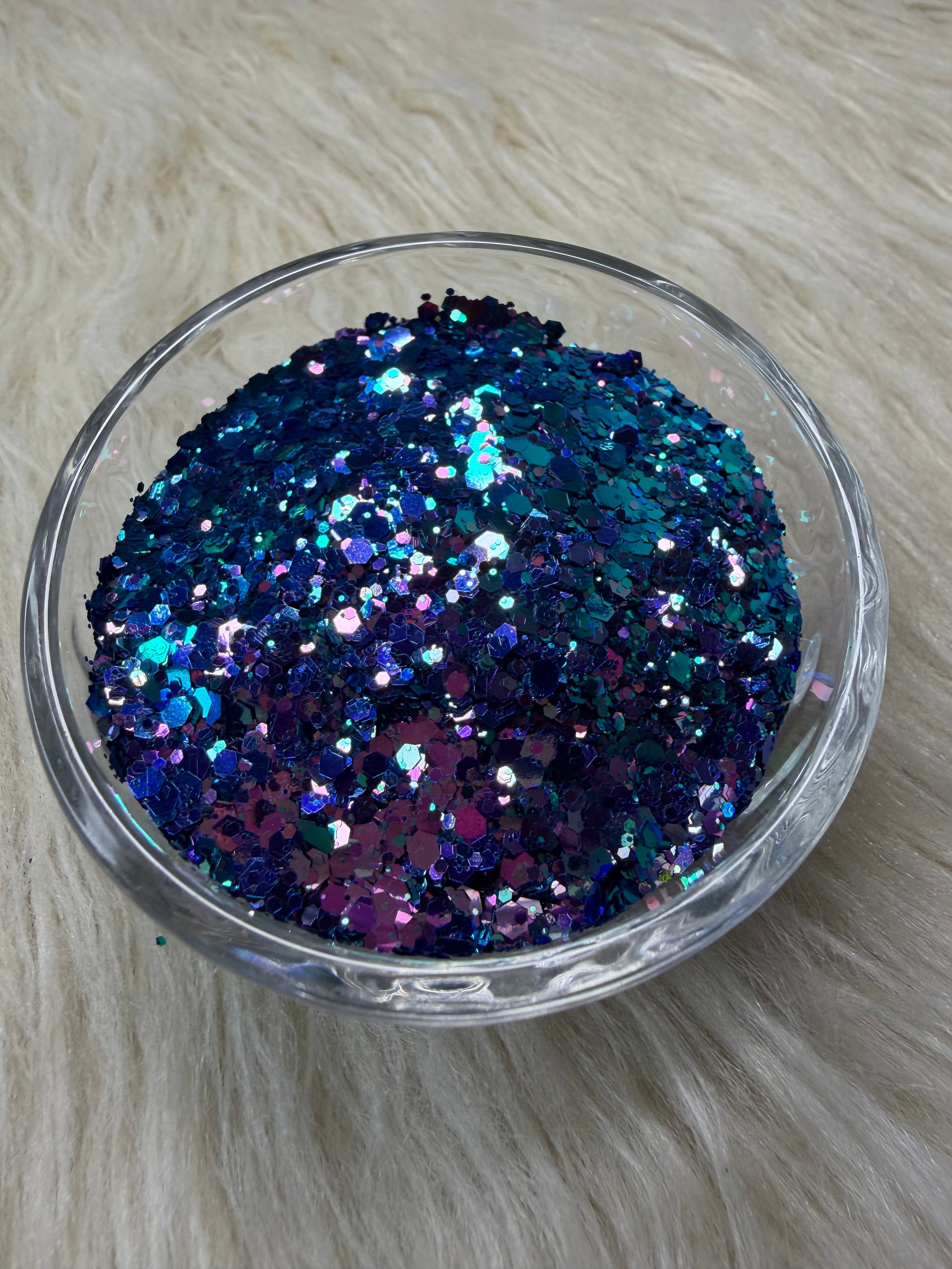 A color shifting purple blue chunky mix, just the right touch of sparkle, perfect for adding a sweet, frosty finish. Ideal for tumblers, resin, nails, and crafts. Sold in two ounce increments.